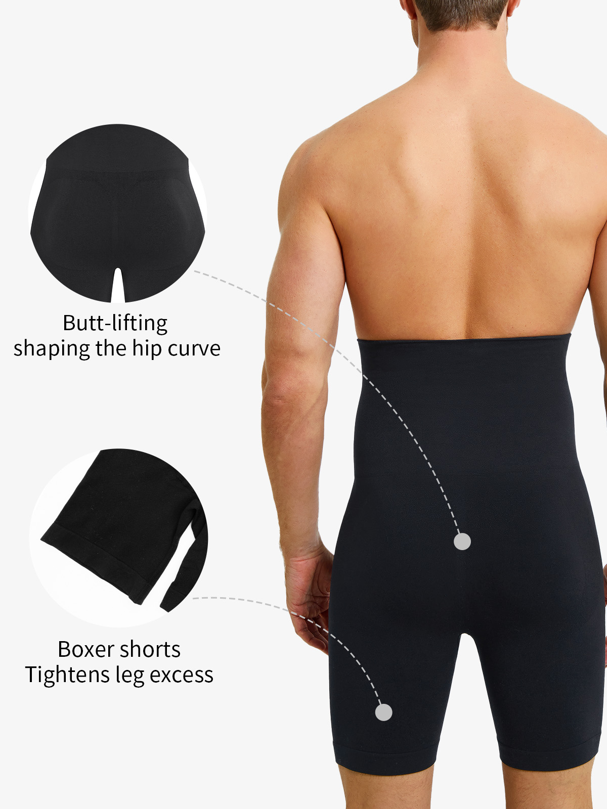 - Four-corner leg design wraps the thighs to smooth excess flesh and prevent chafing.